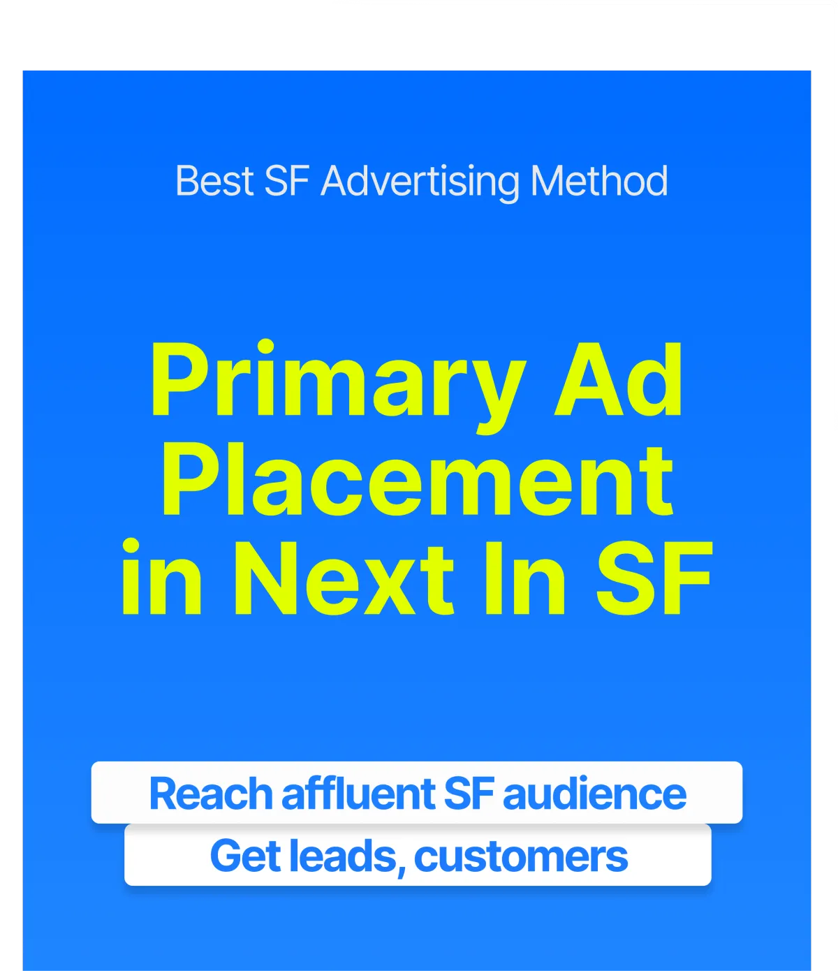 This is for any business or brand looking to reach San Francisco's affluent audience, including tech professionals, entrepreneurs, and investors. Our advertisers include SaaS companies, local businesses, e-commerce brands, professional service providers, event organizers, real estate professionals, financial services, restaurants, and lifestyle brands wanting to connect with high-value San Francisco customers.
