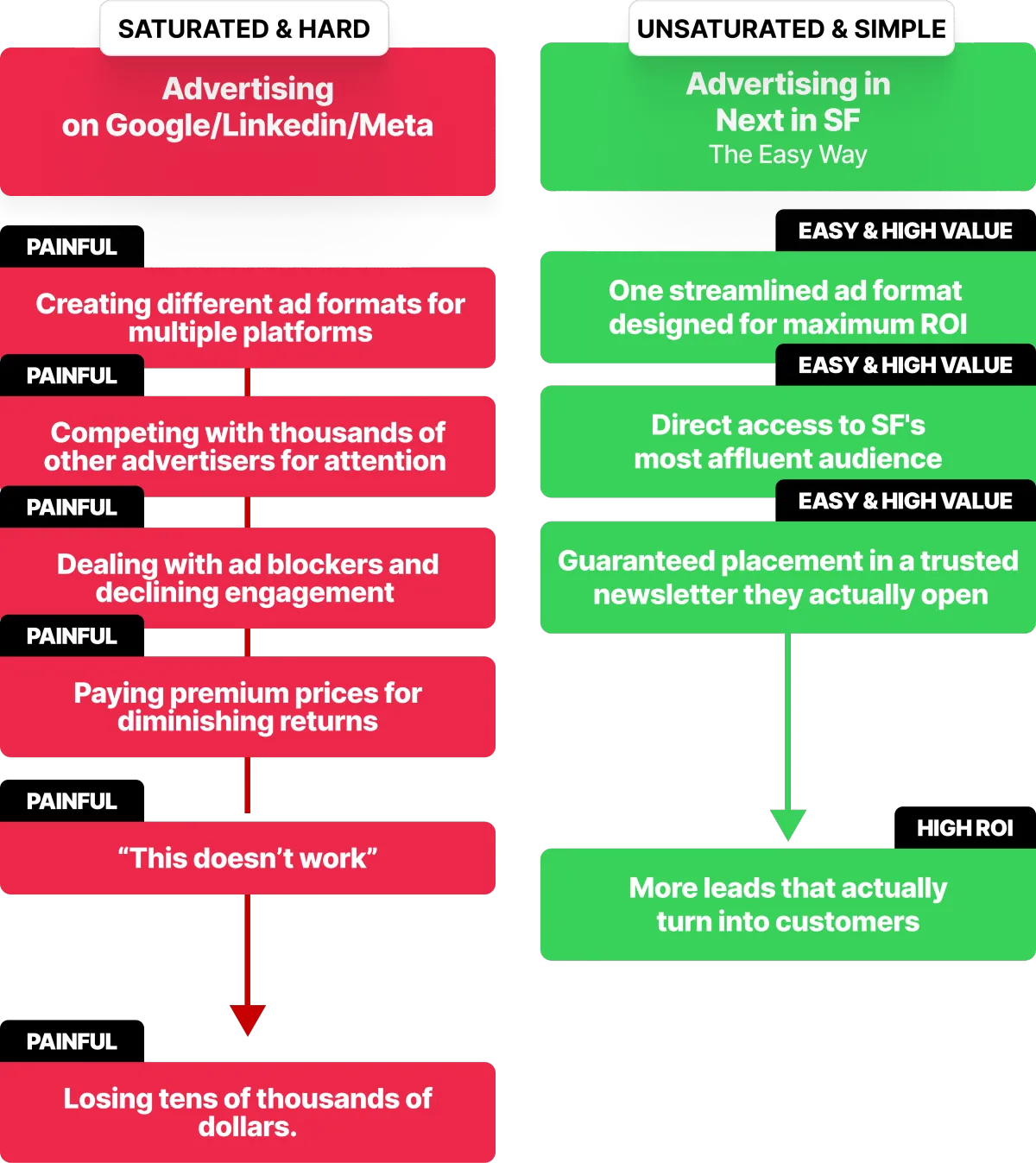 Advertising in the Next in SF newsletter delivers exceptional value by connecting your brand directly with San Francisco's most engaged and affluent audience (including tech professionals, entrepreneurs, and investors).